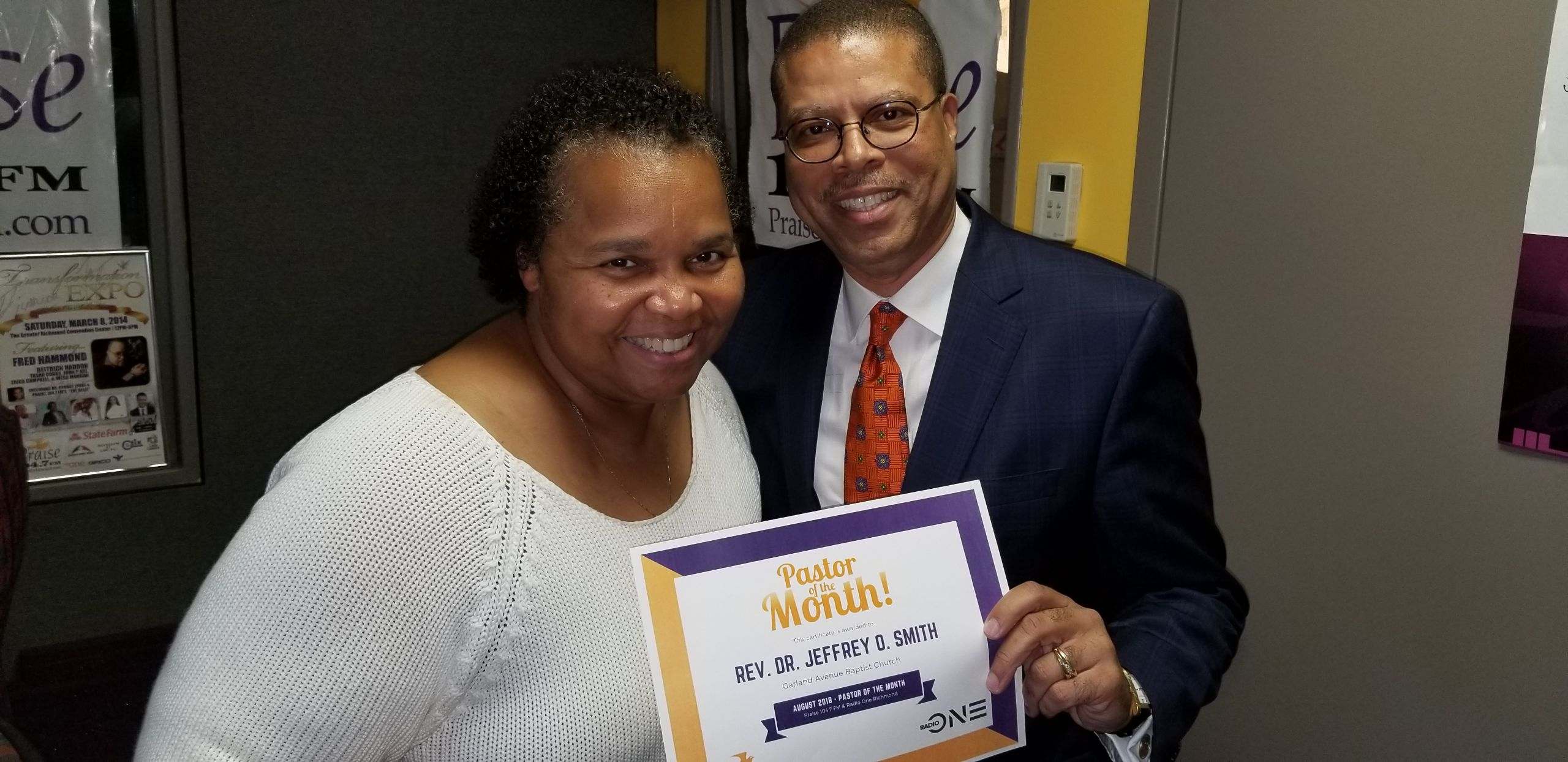 Congratulations to Praise 104.7 FM’s August Pastor of the Month, Rev. Dr. Jeffrey O. Smith of Garland Avenue Baptist Church. Dr. Smith recently stopped by our studio and sat down with “The Belle”.